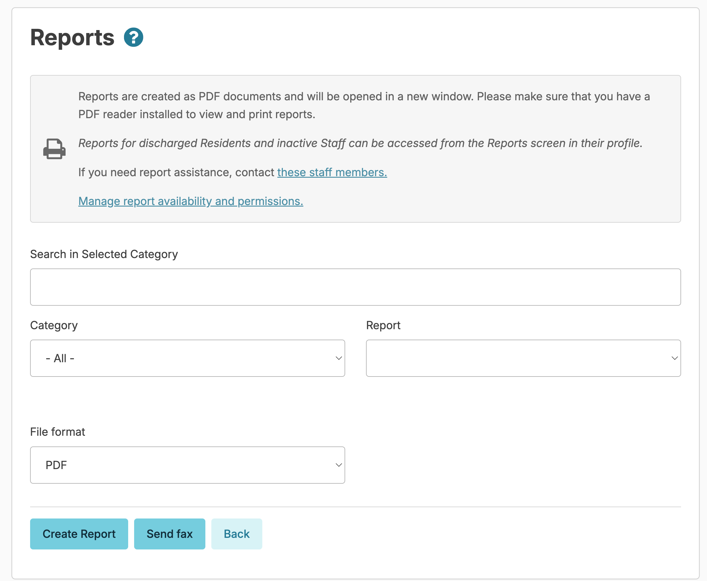 Note: Access reports for inactive staff and discharged residents by navigating to their profile.