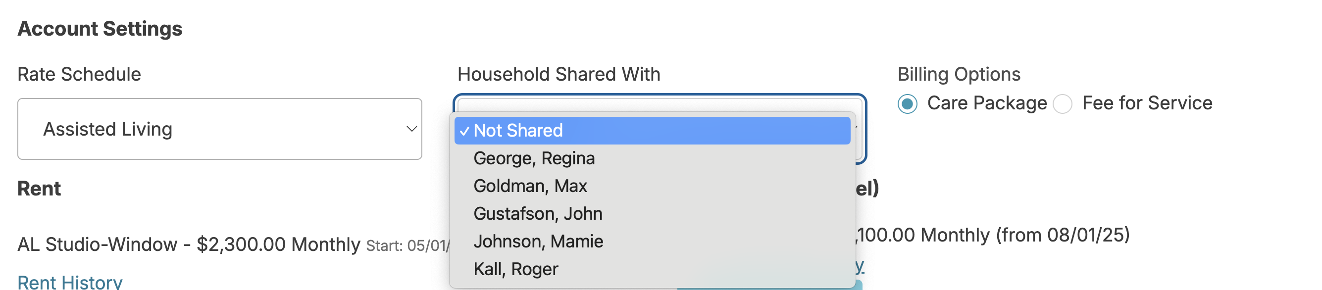 - In the Household Shared With option list, select the resident who will be on the consolidated/combined statement
