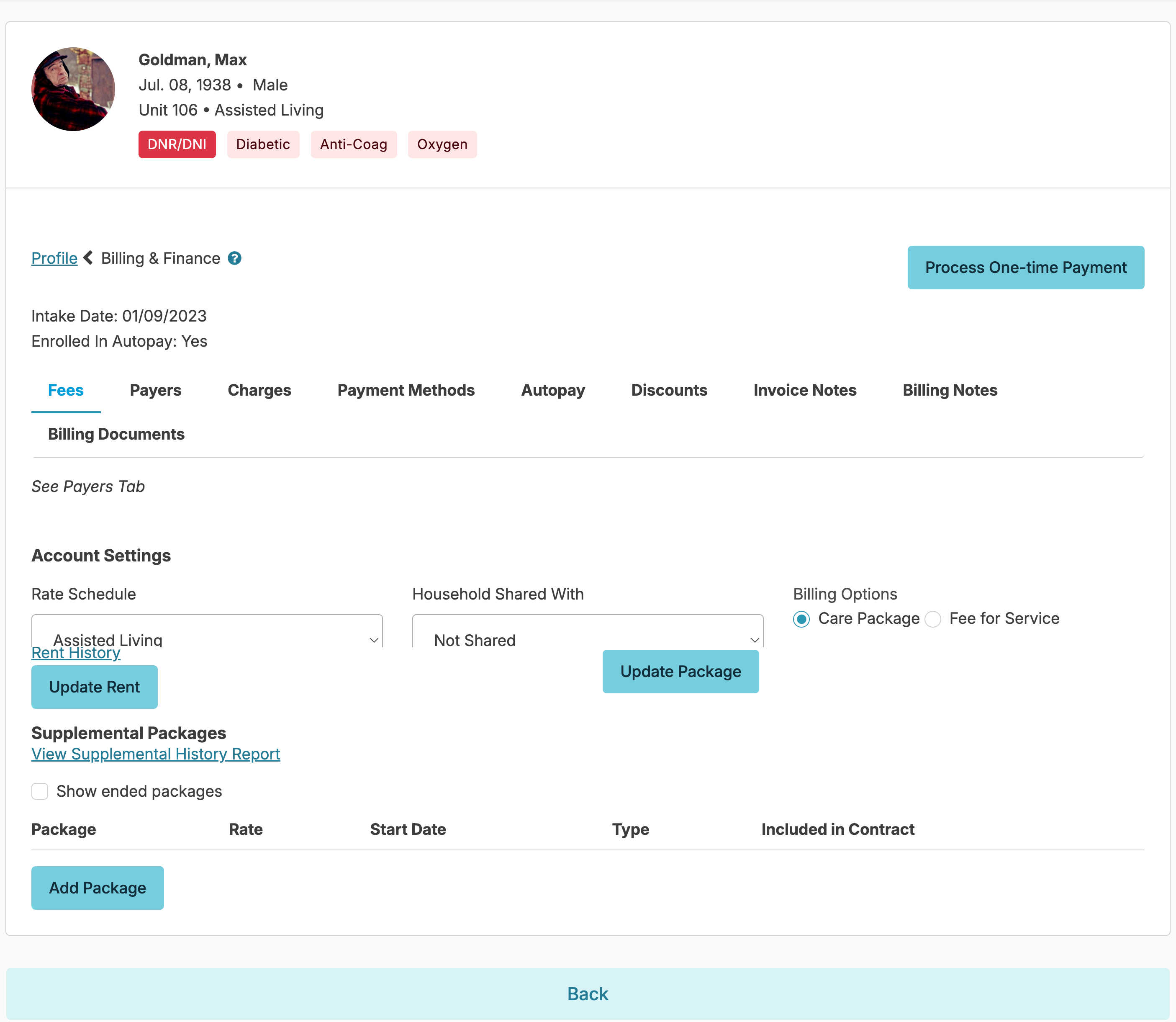 - Supplemental Packages can be assigned regardless of Billing Option (Care Package vs Fee For Service).