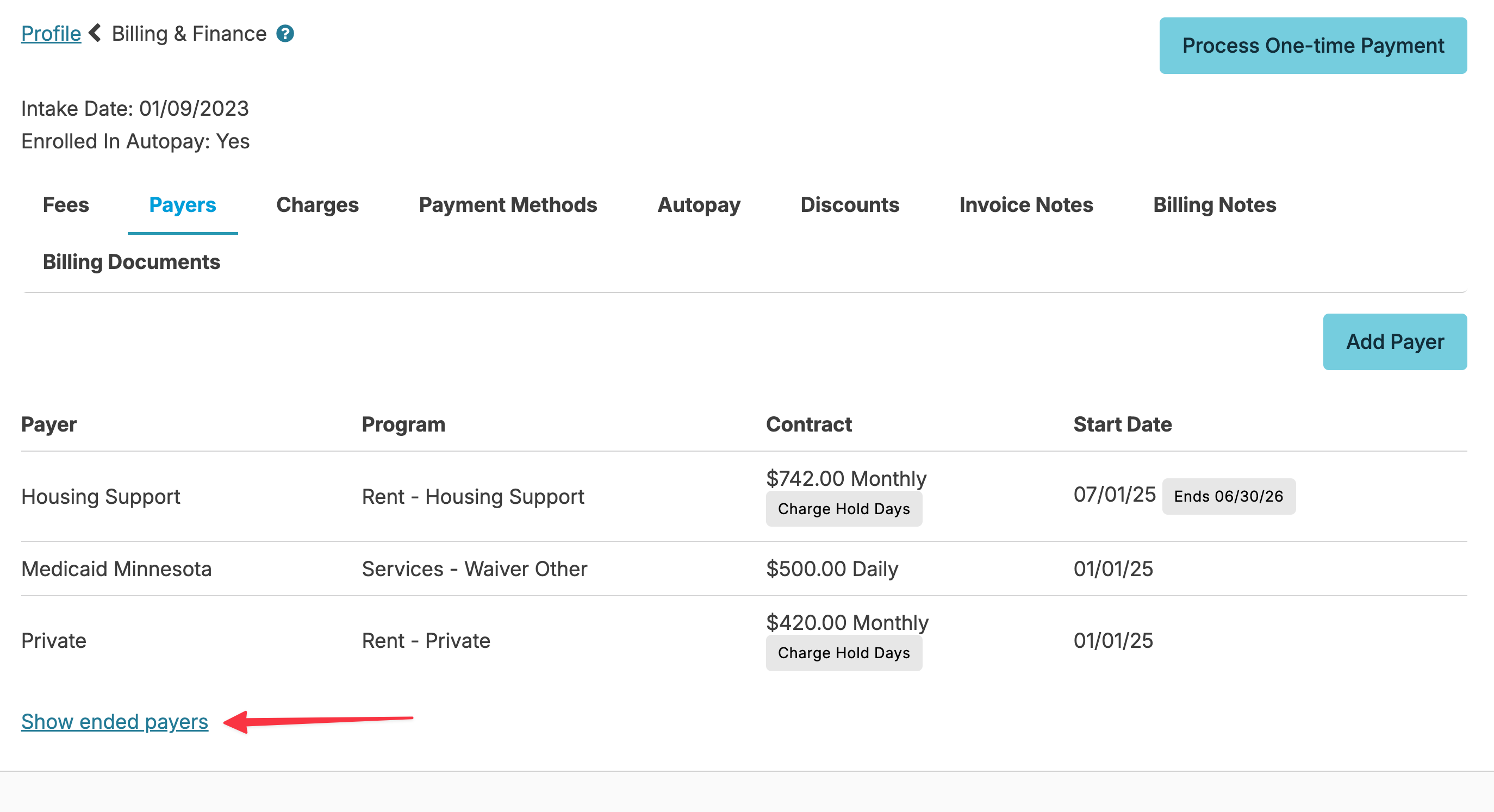 Note: Ended payers can be edited by clicking on Show ended payers, and selecting the payer you wish to edit.