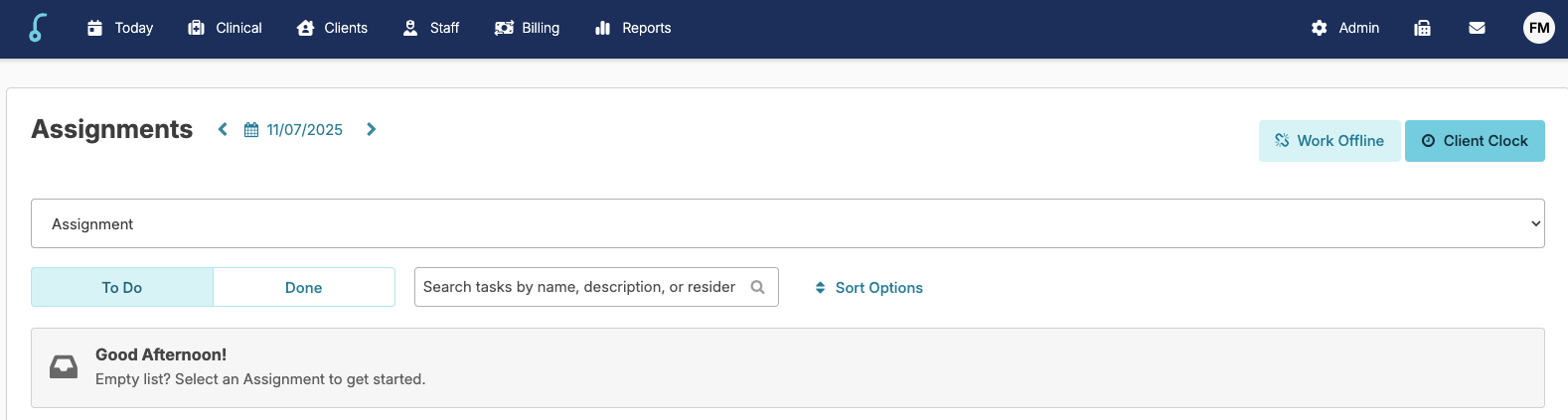 🗒️ No assignments available means that this client has services scheduled for the day but your staff provider type is not authorized to perform those services.