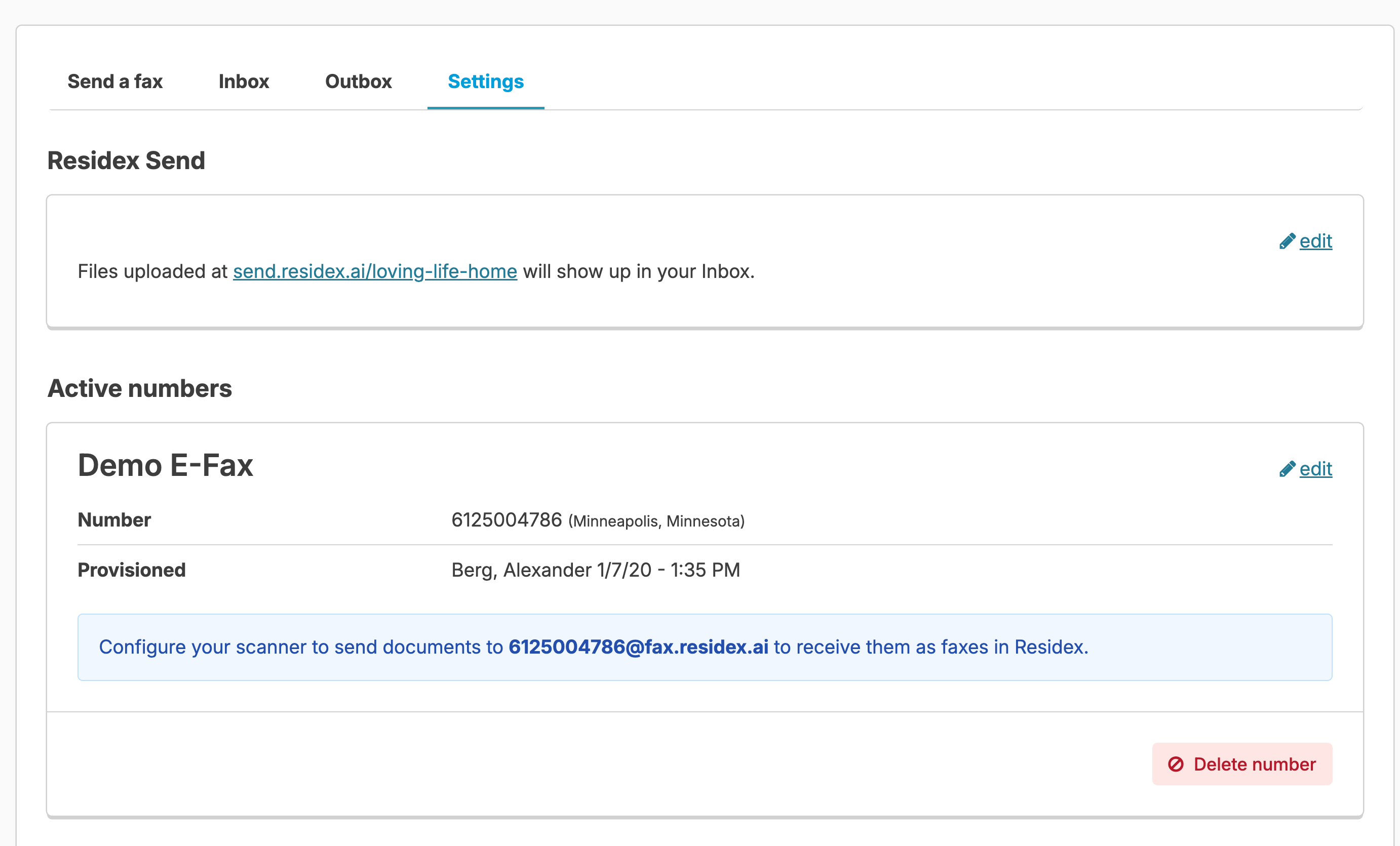 You can also configure your scanner to send documents right into Residex's fax/files inbox by configuring your scanner to send to 1234567890@fax.residex.ai You are then able to process this exactly like a typical fax, but with much better photo quality. Note: this also works to send in from a phone or other devices with email capabilities.