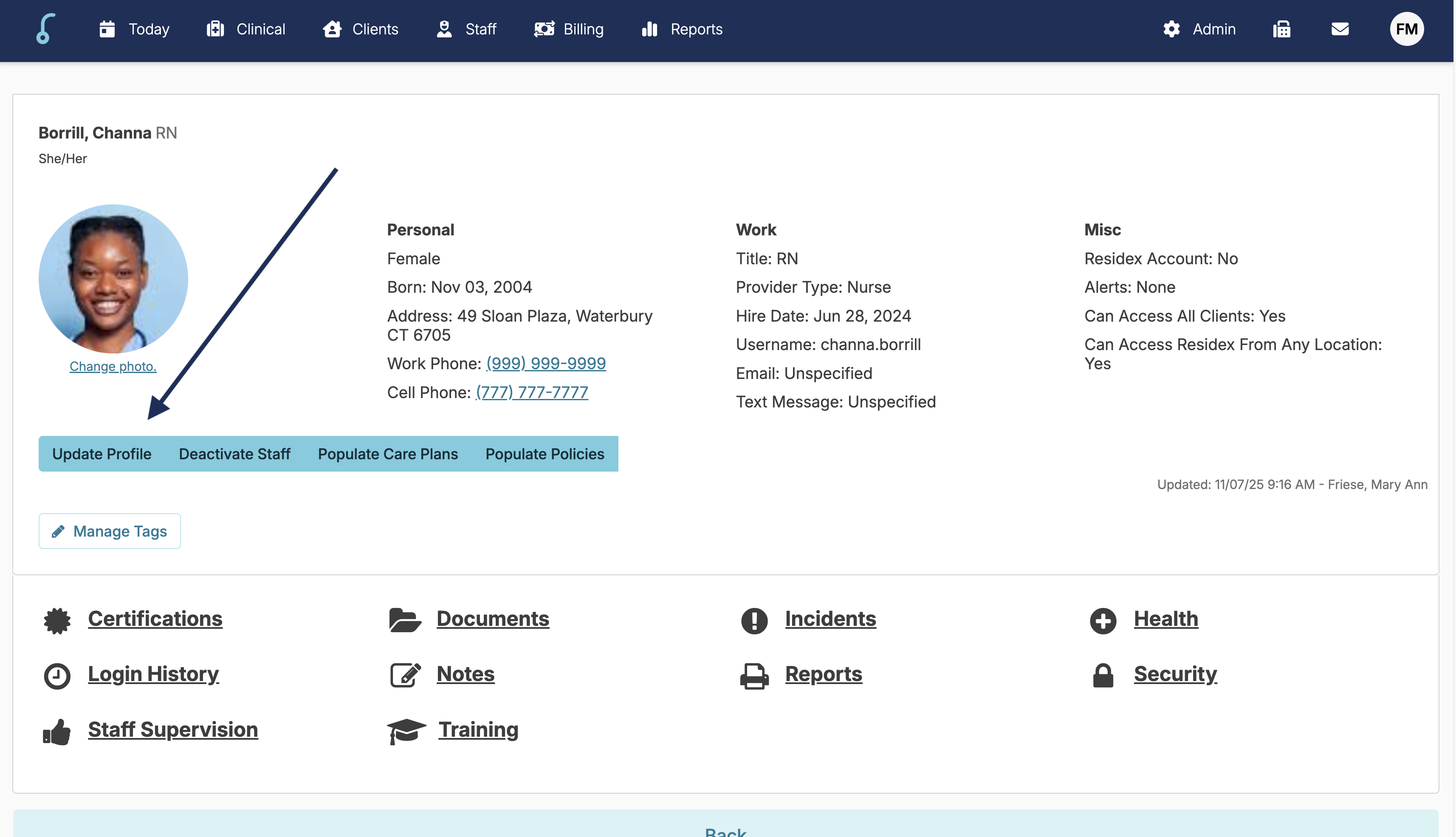 Staff may have been entered prior to EVV being turned on. EVV requires additional staff information and if it is missing, the 'Client Clock Readiness' report will capture staff with missing information. To update a staff profile