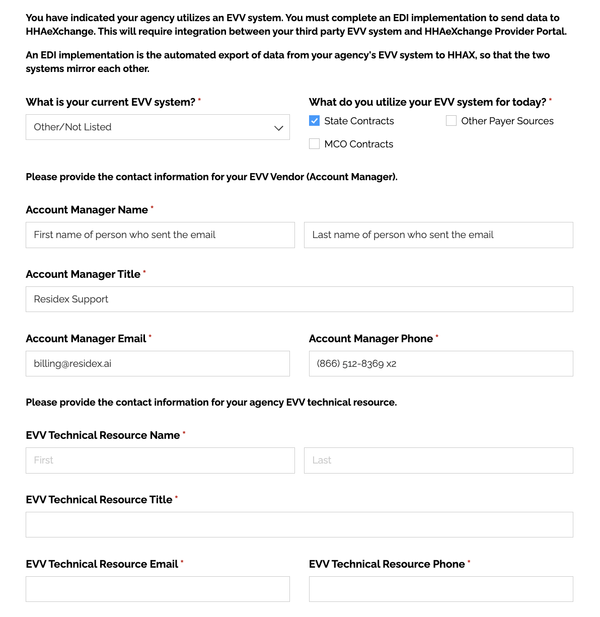 - Important: Even if you have previously submitted the Third Party EVV Attestation, you must complete it again to enable Residex as your EVV system