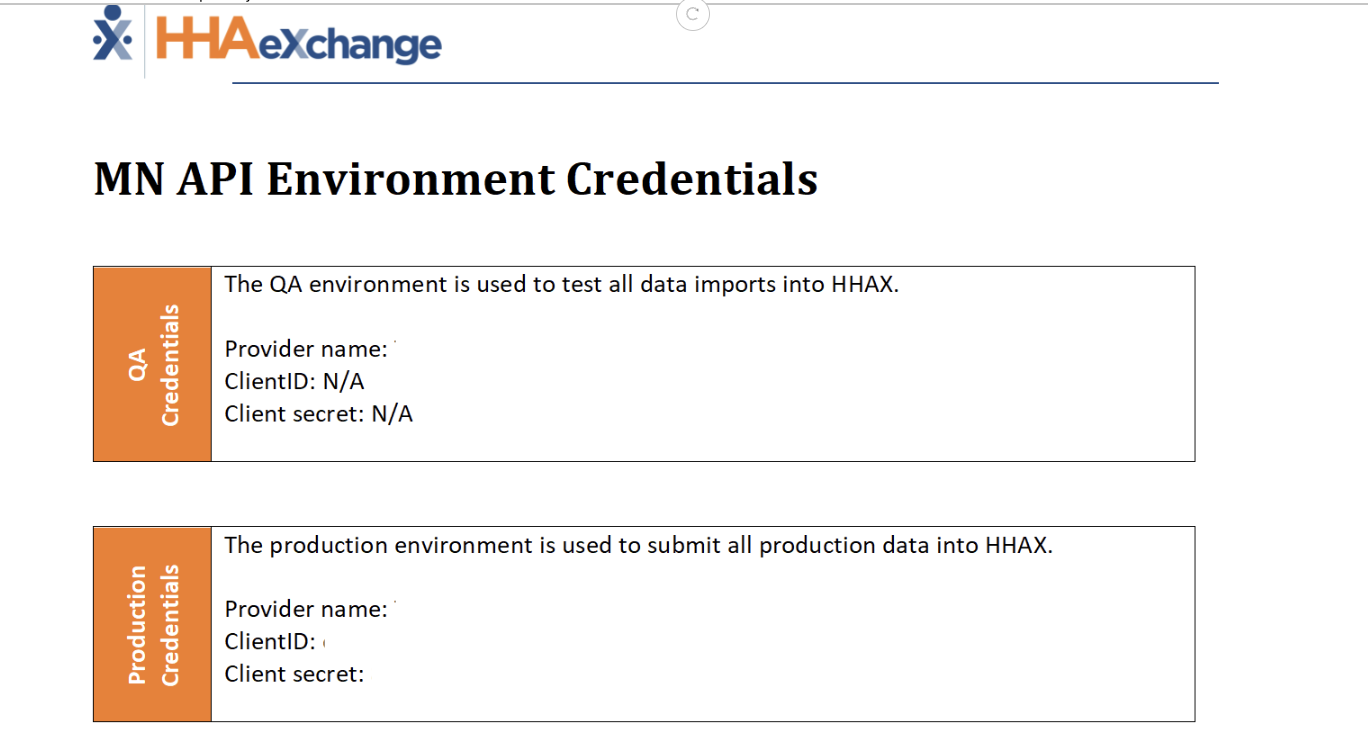 - Timeline: 2-3 business days after form submission you will receive your API Credentials via email from HHAX