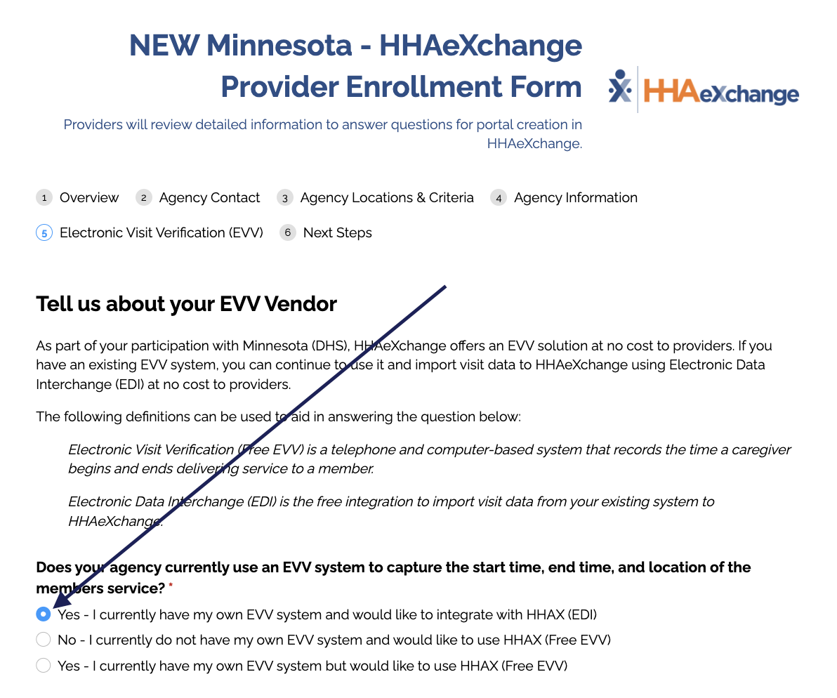 ❗️Make sure you click "Yes - I currently have my own EVV System."