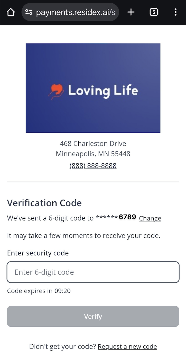 Click the payment link to be routed to a verification page. Choose where you want to receive your two-factor authentication (2FA) code based on the provided options.
