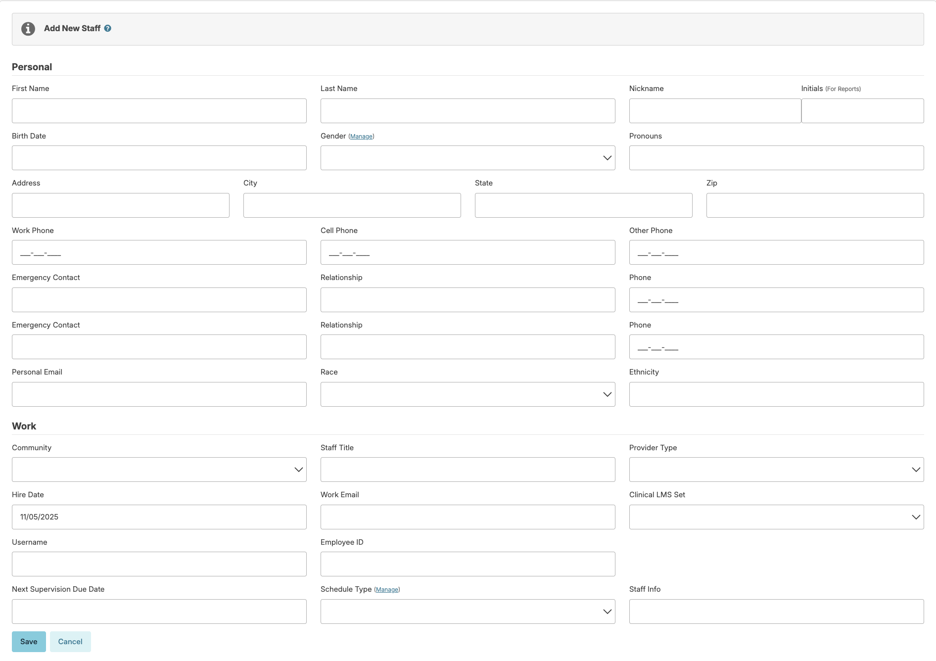 • Press Save to finish entering the new staff member.