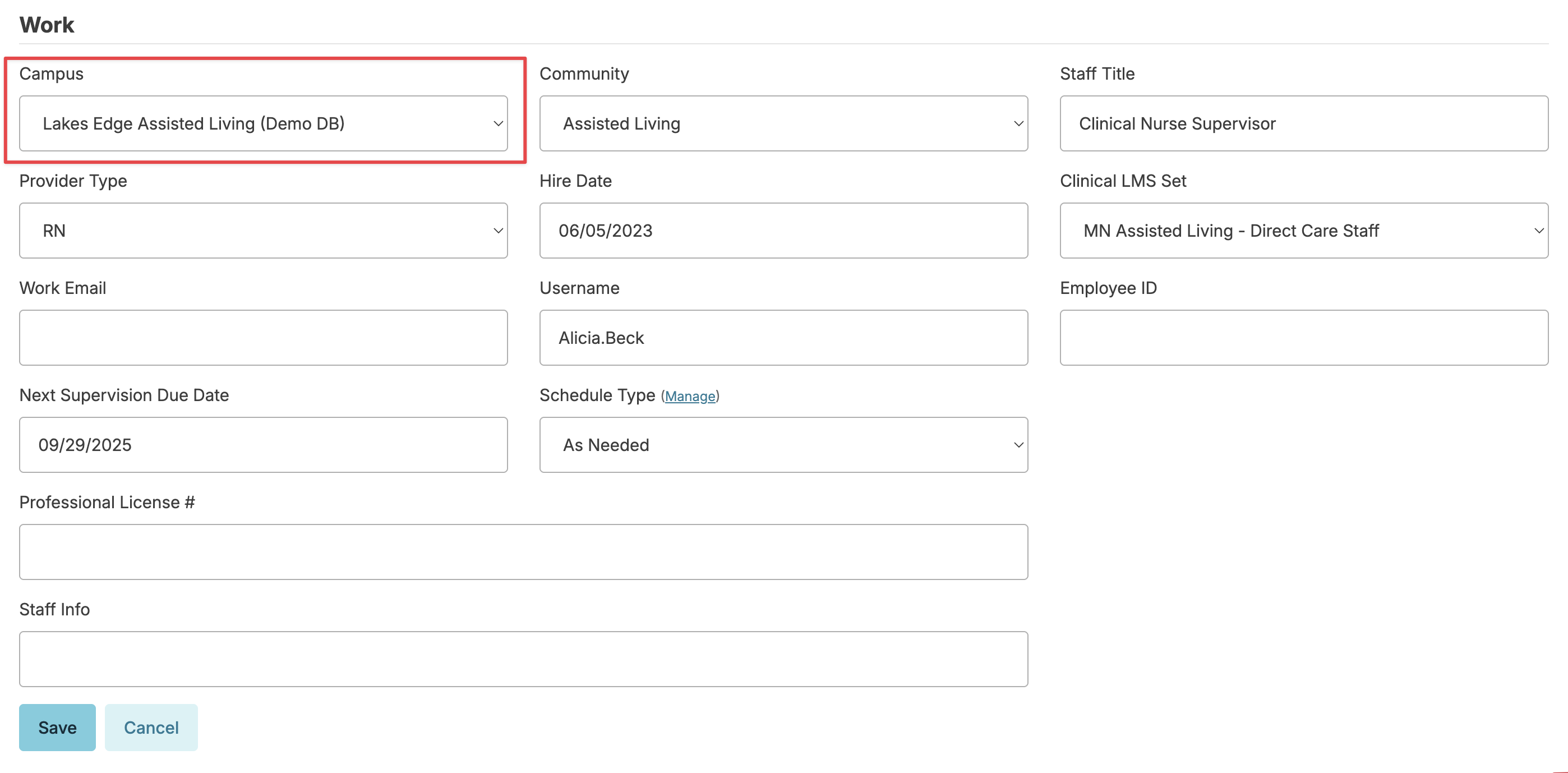 • Staff Orientation completed - When this checkbox is selected, the date the orientation is completed will be saved. This date can be edited if needed