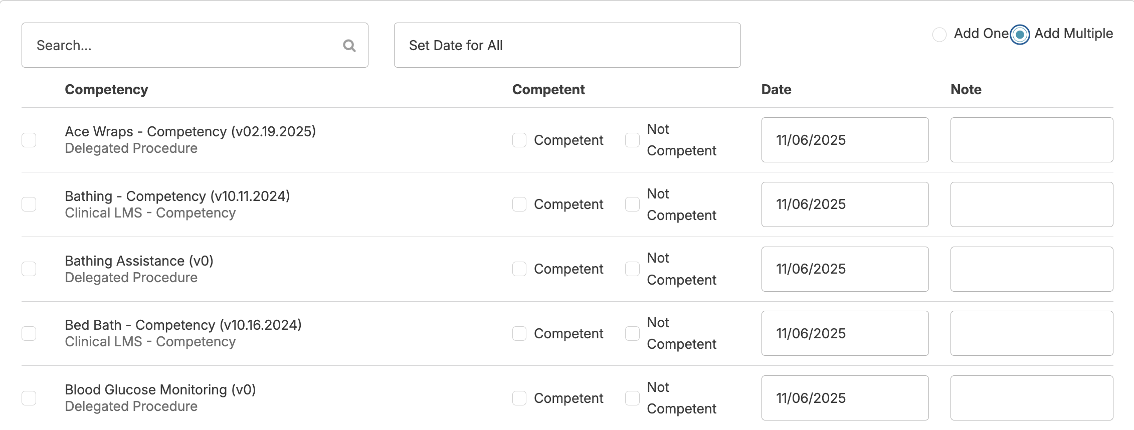 Document Single Competency for Multiple Staff
